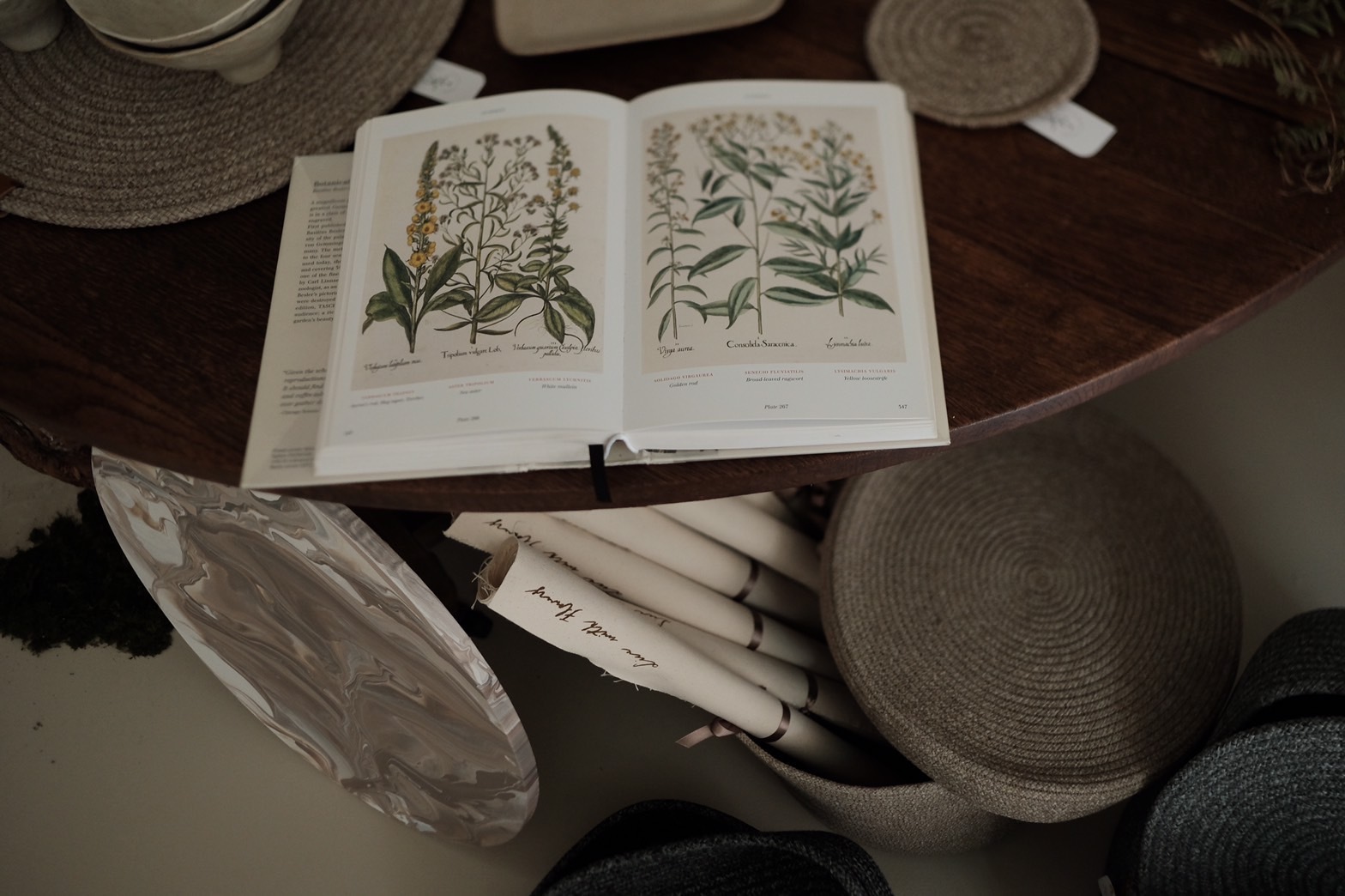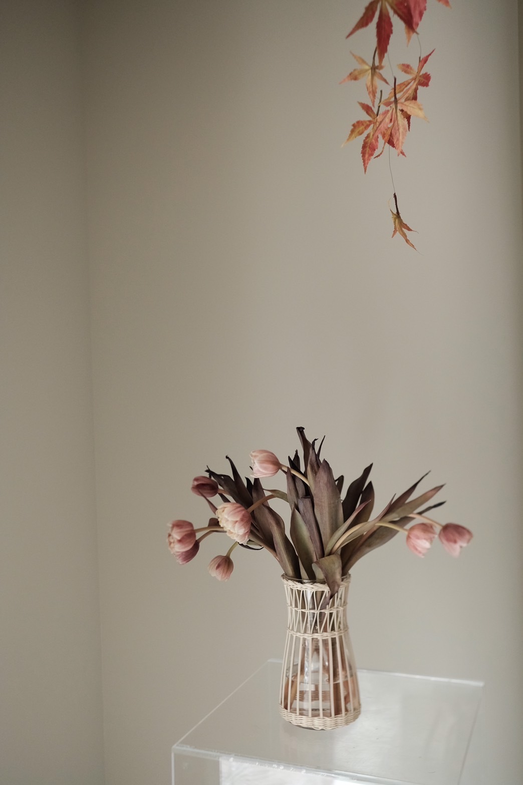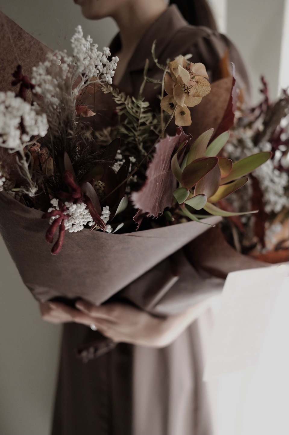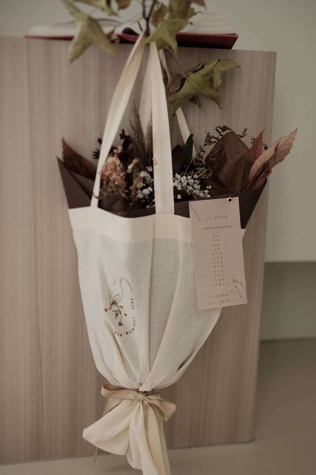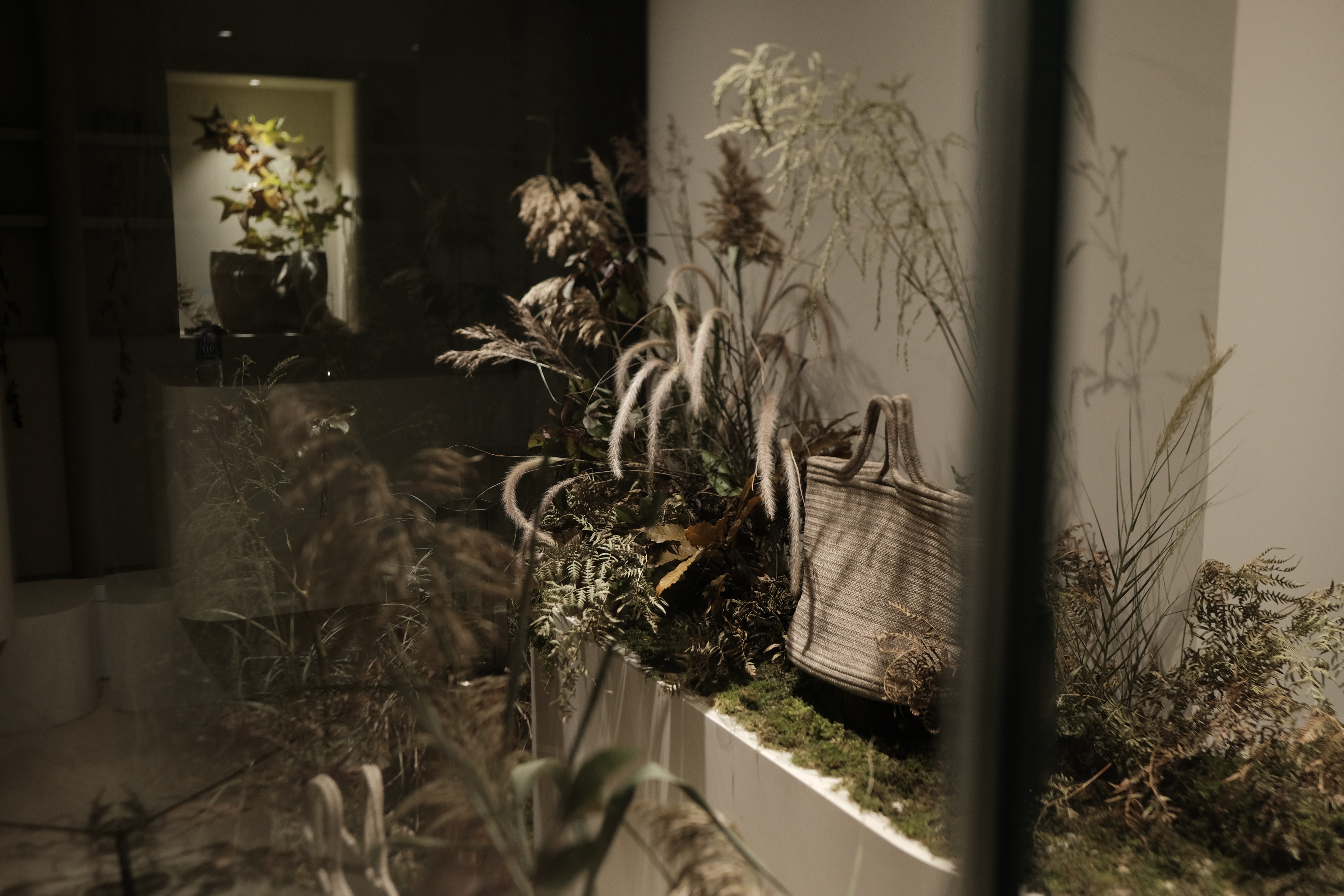 這一季的櫥窗發想是由秋天的田野來做延伸,想要和大家分享的是秋天時微風吹拂的模樣,所以這次「拾米的秋季展」,運用了許多元素都是在大自然裡就經常可以看見的素材,例如:知風草、栗子葉、狼尾草、咖啡蕨⋯⋯等。