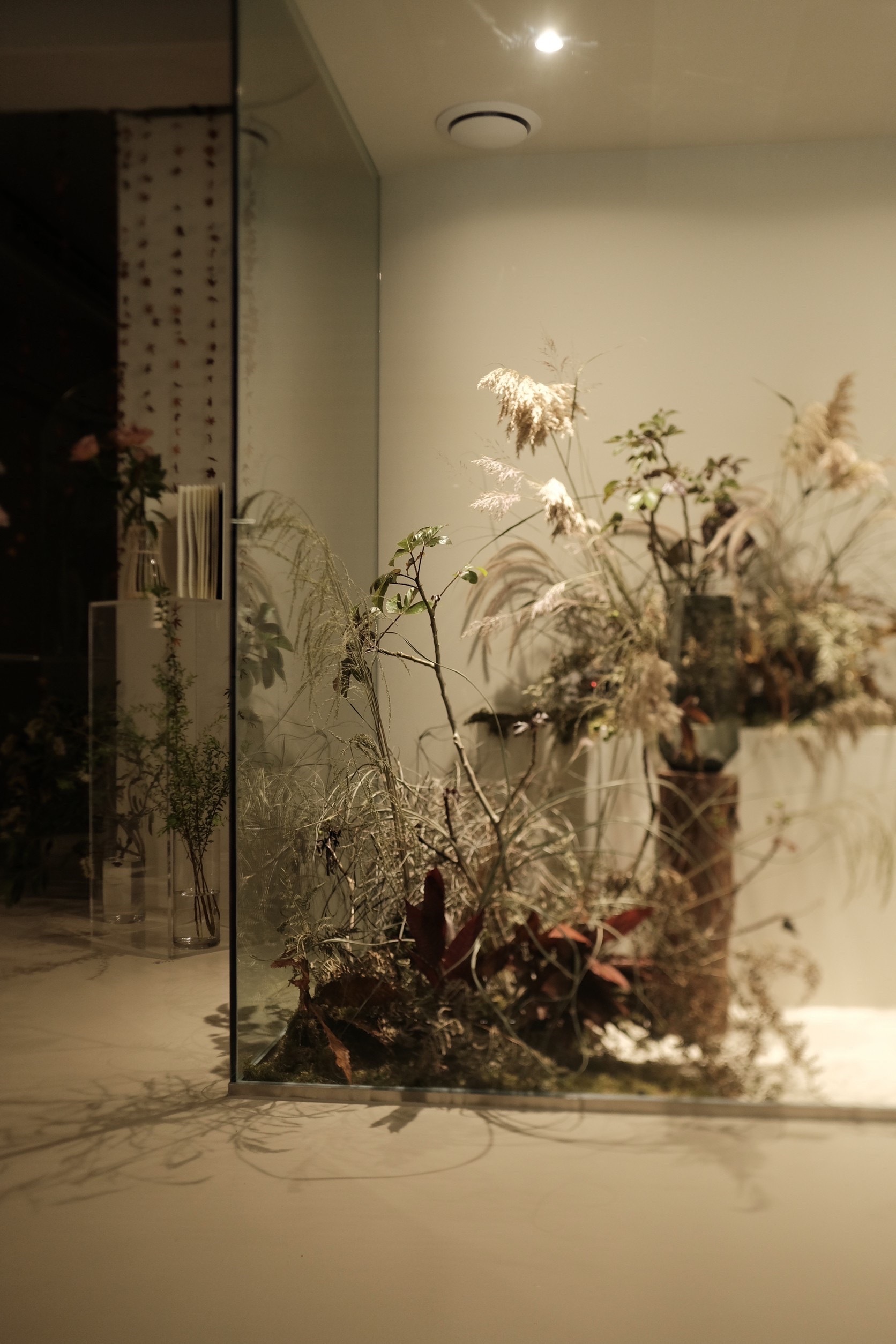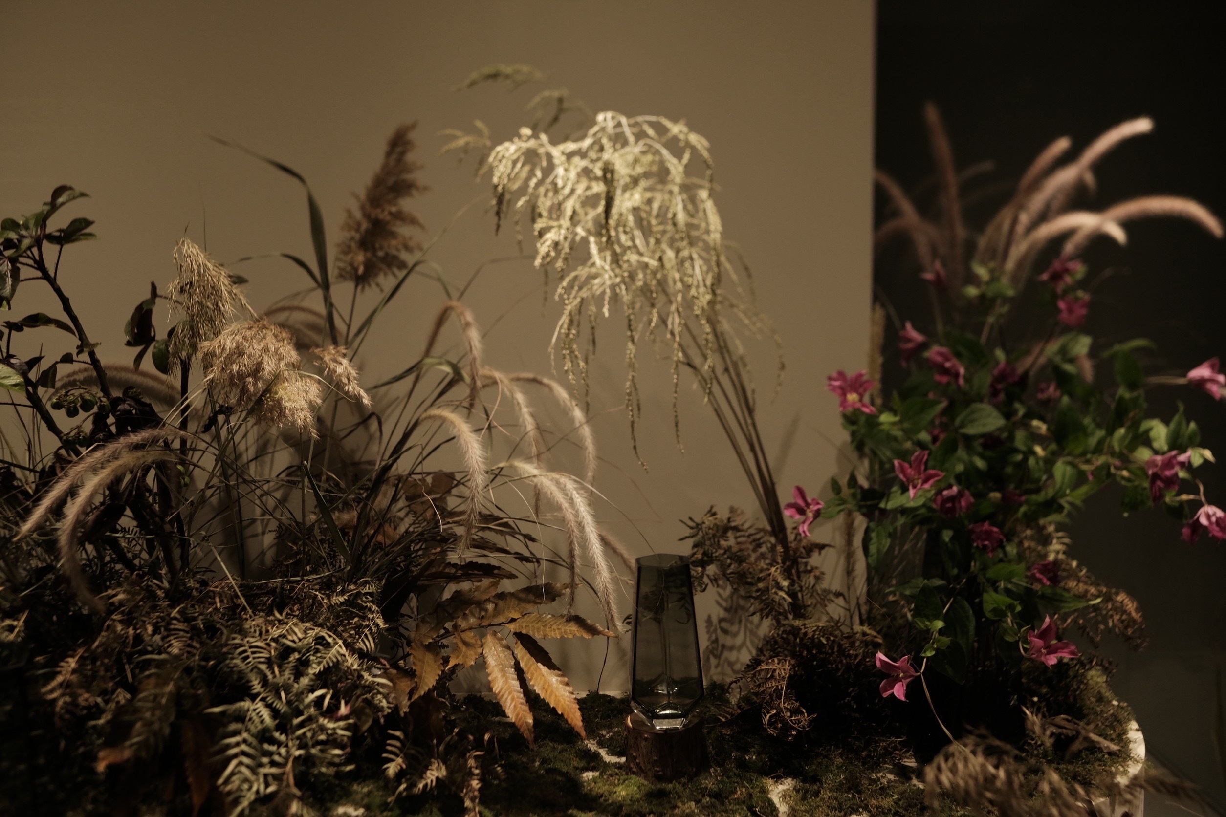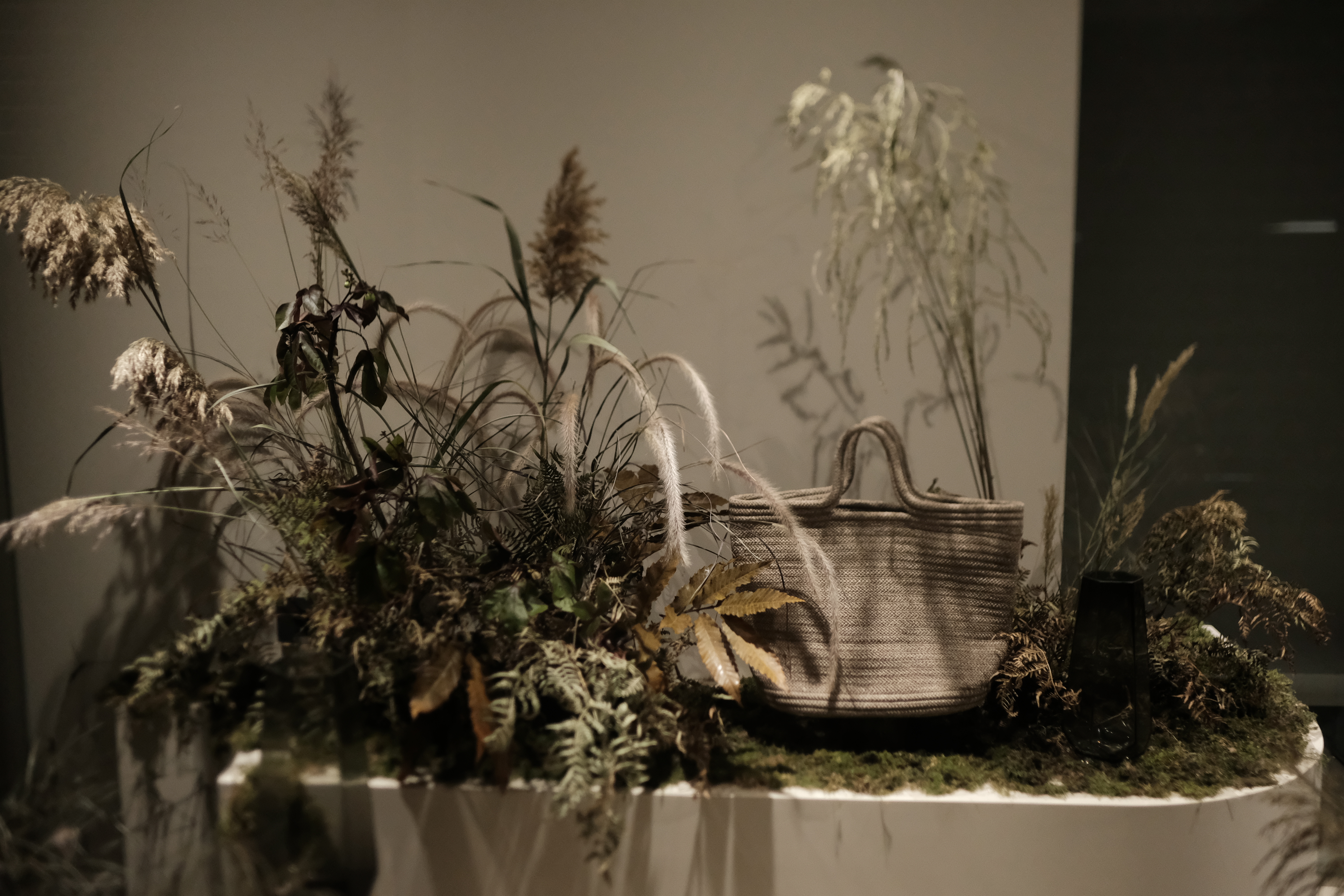 拾米一直致力於傳達環保再利用的花藝展現模式,這次的秋季展,也同樣是以「 無海棉的插花手法」來呈現由「地面而生」的變化。