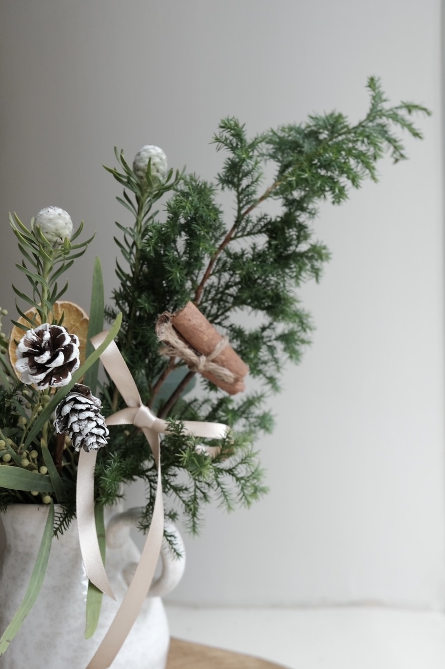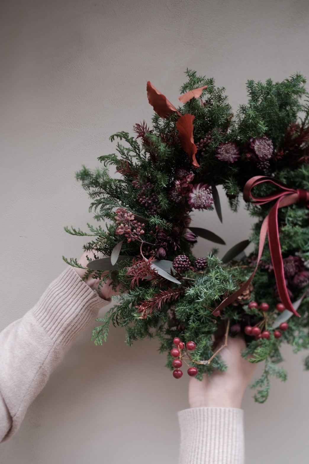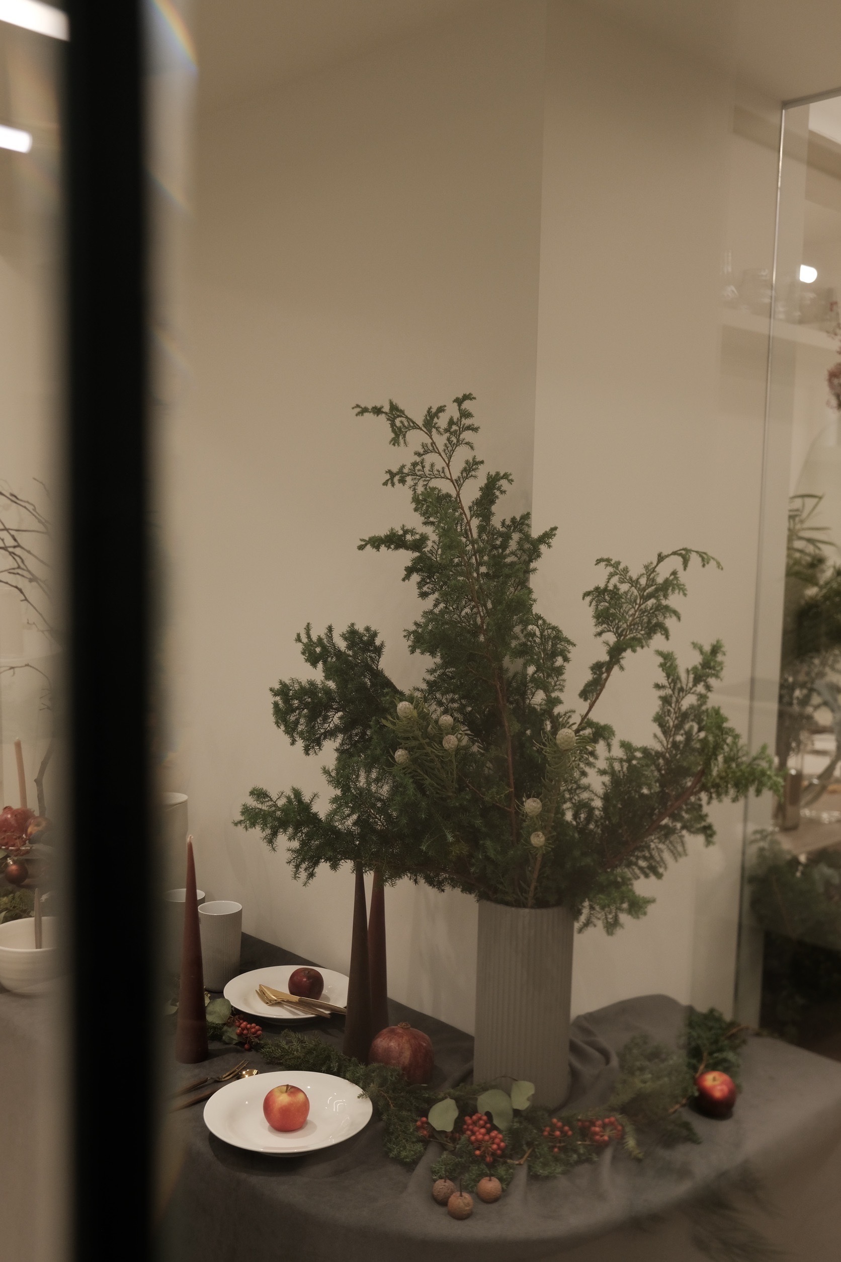 每一年的聖誕節,是大家與身邊重要的人相聚的時刻,這次將花房佈置成餐桌的模樣,並沒有選擇使用太多華麗的進口花卉,是希望透過簡單樸實的花材、水果呈現更平實的溫馨。